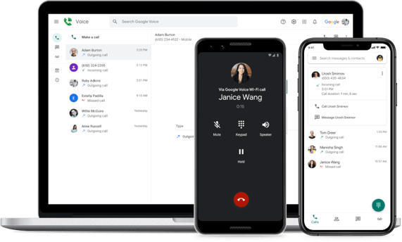 Google Voice: Una solución telefónica nativa en la nube y fácil de administrar, que usa la inteligencia artificial de Google para ofrecer una experiencia de llamada intuitiva que ayuda a las personas a mantenerse conectadas y ahorrar tiempo.